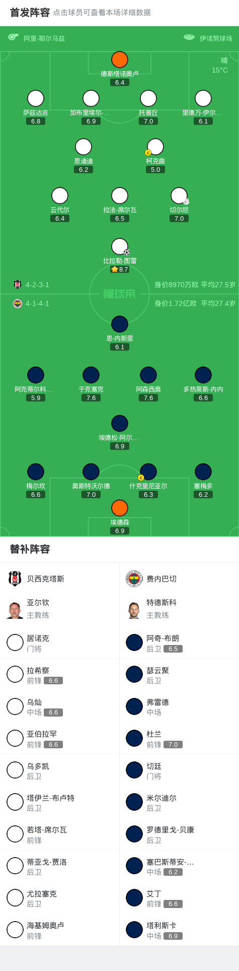 第32分钟,于克塞克破门扳回一球,费内巴切1-2贝西克塔斯