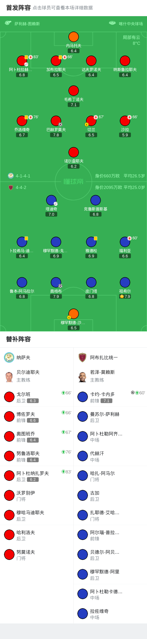 第42分钟,纳萨夫球员阿卜杜拉赫马托夫助攻巴赫罗莫夫打入一球。