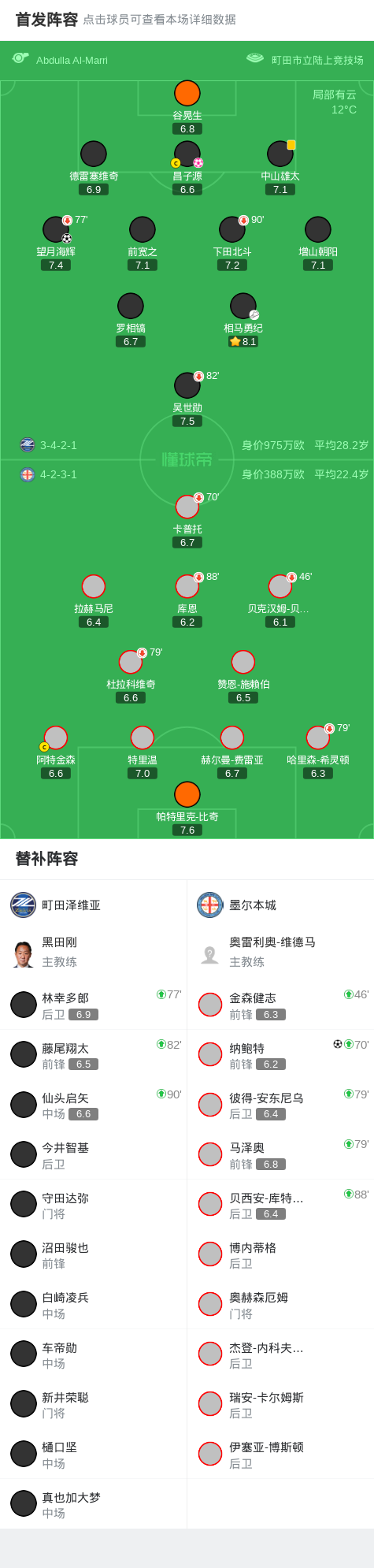 第1分钟,町田泽维亚球员昌子源自摆乌龙。