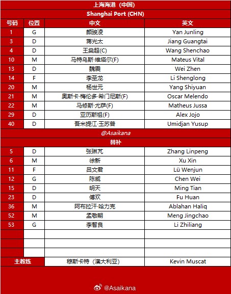 北京时间11月4日20:15,亚冠精英联赛小组赛第4轮,上海海港客场挑战武里南联,赛前双方公布本场比赛的首发阵容: