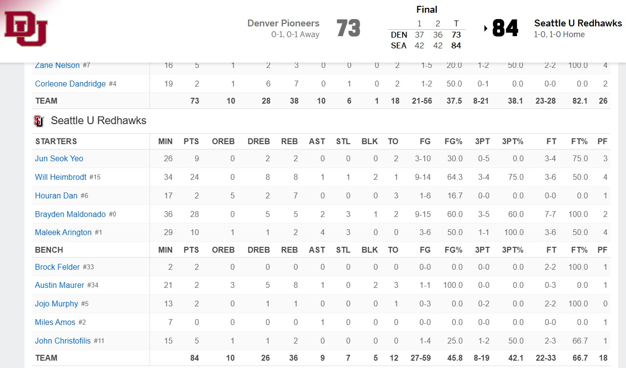 北京时间今日,在NCAA常规赛揭幕战中,西雅图大学以84-73击败了丹佛大学取得开门红。