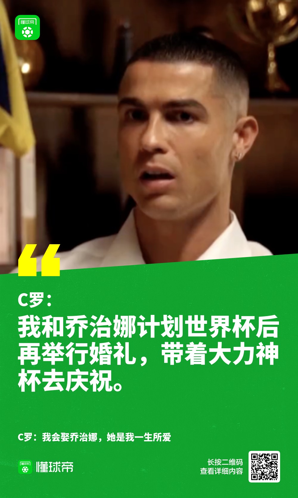 C罗:还没有。我们计划世界杯后再举行婚礼,带着大力神杯去庆祝。