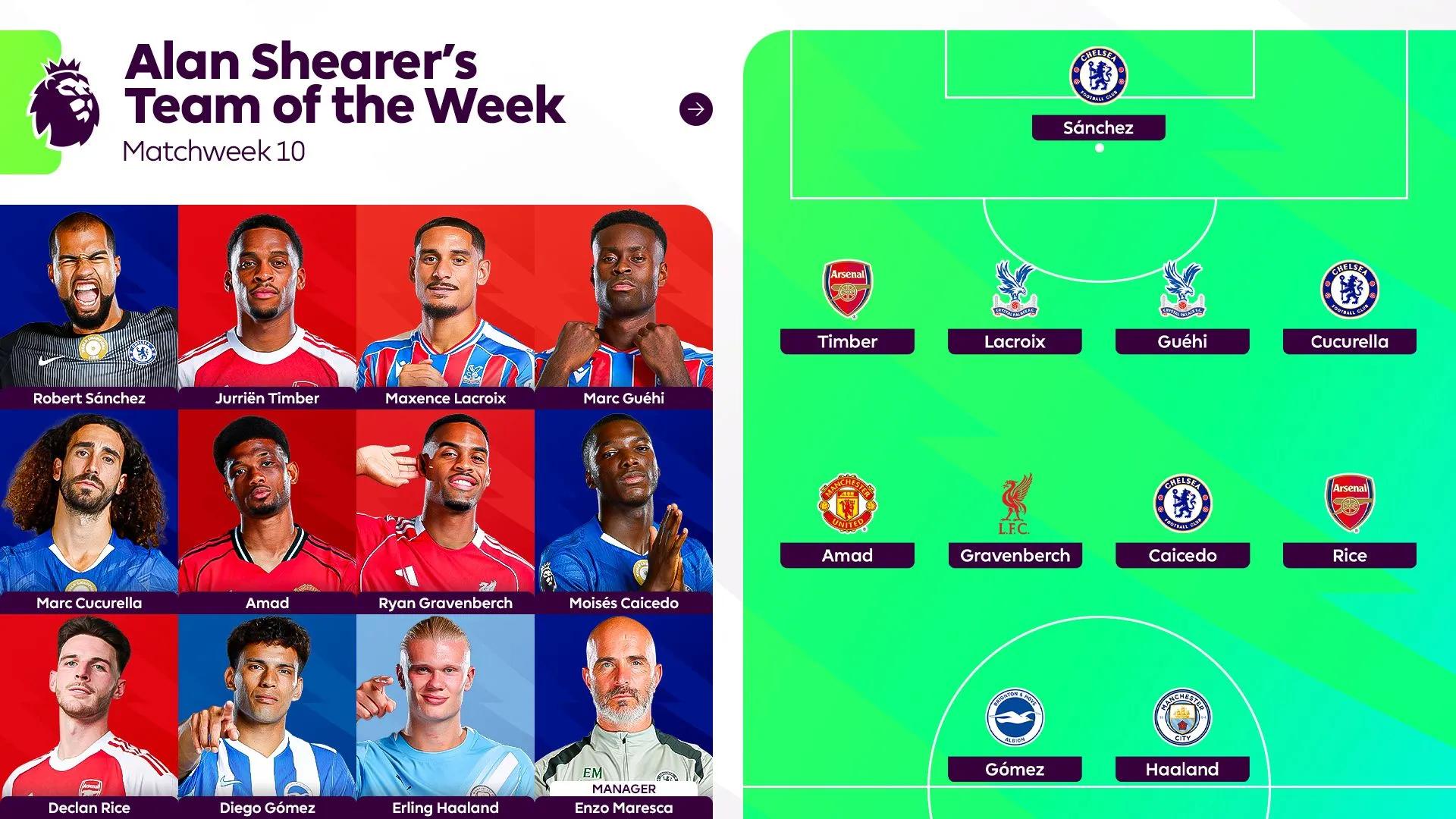 北京时间11月4日,英超官方公布了希勒评选的英超第10轮比赛最佳阵容。