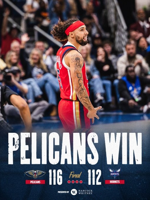 本场比赛鹈鹕队当家球星锡安-威廉森作壁上观,鹈鹕剩余球员齐心协力,共8名球员得分上双,最终力克黄蜂取胜。