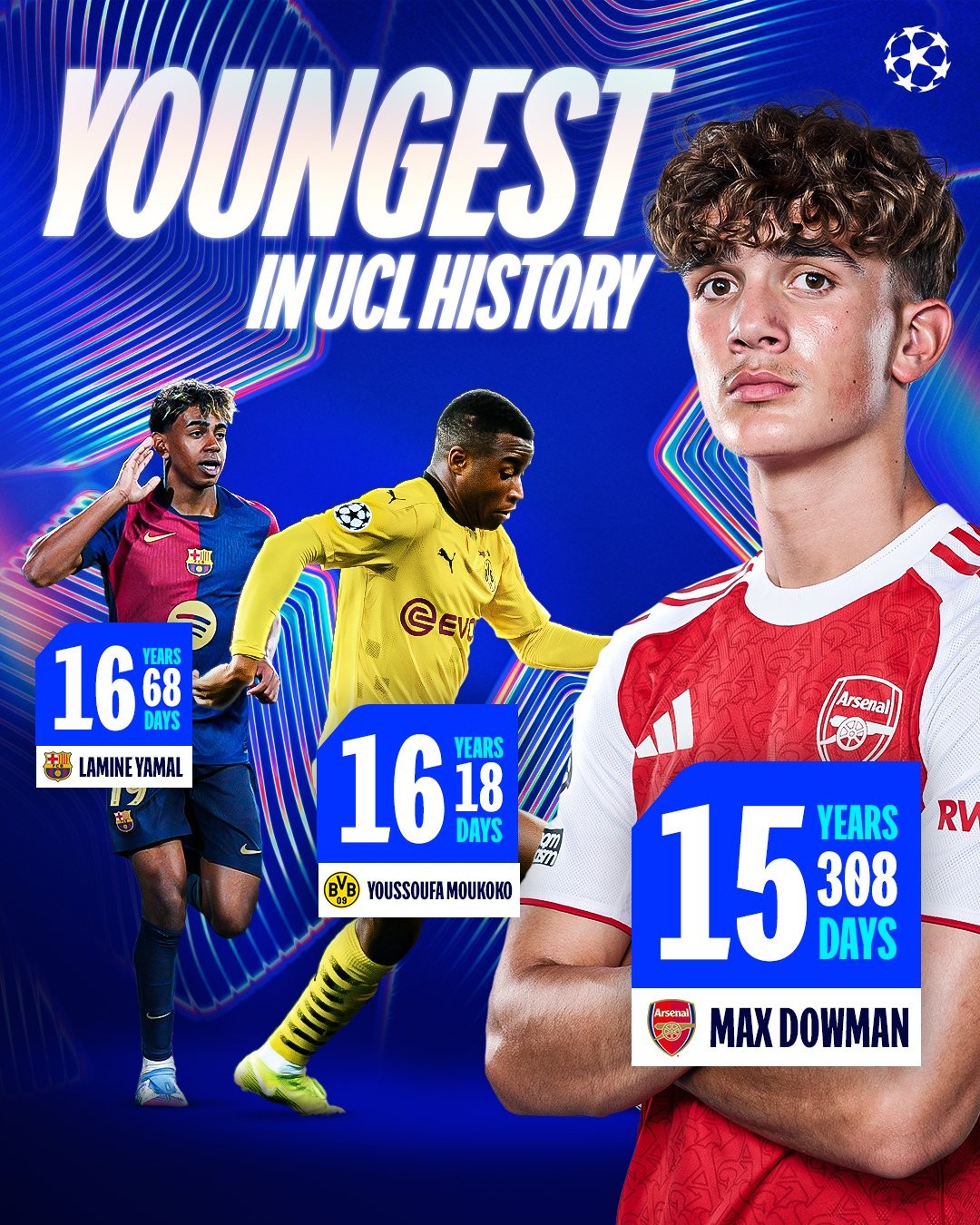 道曼在本场比赛当天的年龄还只有15岁308天,这位阿森纳青训出身的锋线小将也就此成为了欧冠联赛历史上最年轻的出场球员。