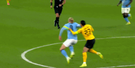 第69分钟,哈兰德和埃姆雷-詹激烈身体对抗,二人发生言语冲突