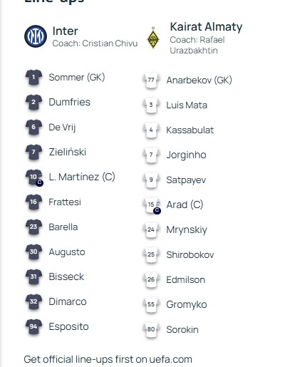 北京时间11月6日4:00,国米主场对阵阿拉木图凯拉特。赛前首发公布。