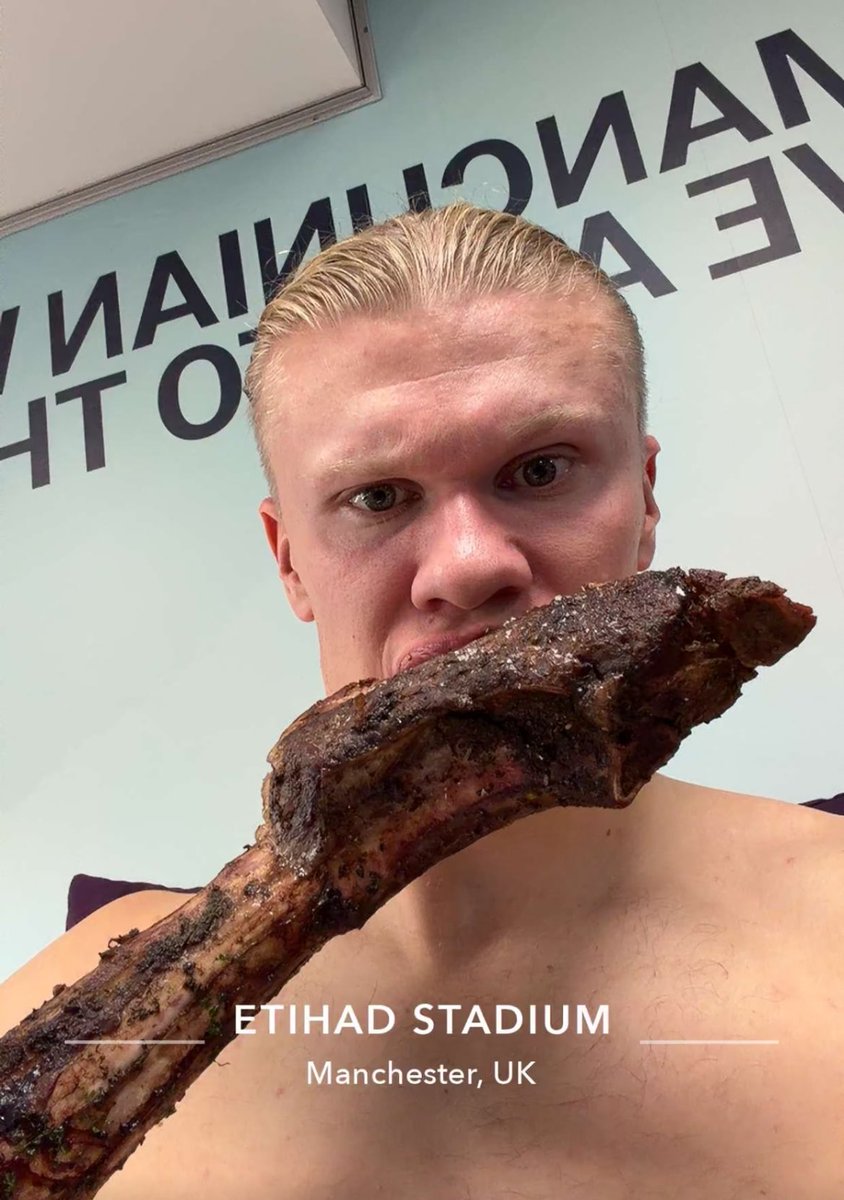比赛结束后,哈兰德在社交媒体上晒出了自己在更衣室吃羊排的照片。相关链接:【太阳报:哈兰德一天最多能吃六顿饭,周末还会在自家花园烤肉】
