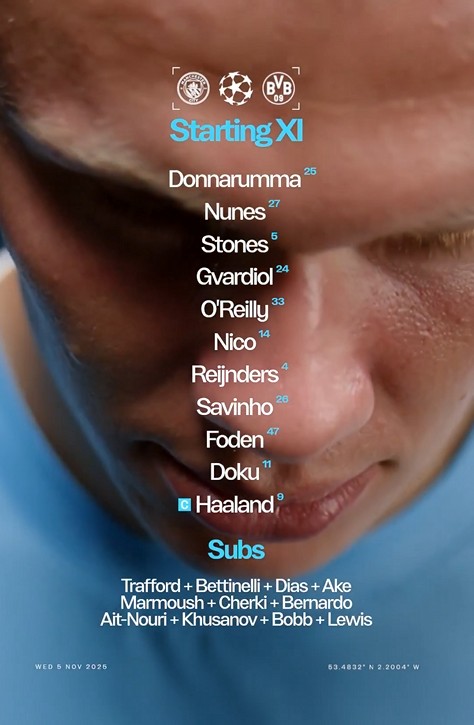 北京时间11月6日凌晨4点,欧冠联赛阶段第4轮展开一场焦点战役,曼城对阵多特。赛前,双方公布首发阵容。 球员名单 文章导航 巴萨客战布鲁日:亚马尔、拉什福德首发,德容、费尔明出战 国米vs凯拉特:劳塔罗搭档皮奥,弗拉泰西、比塞克出战