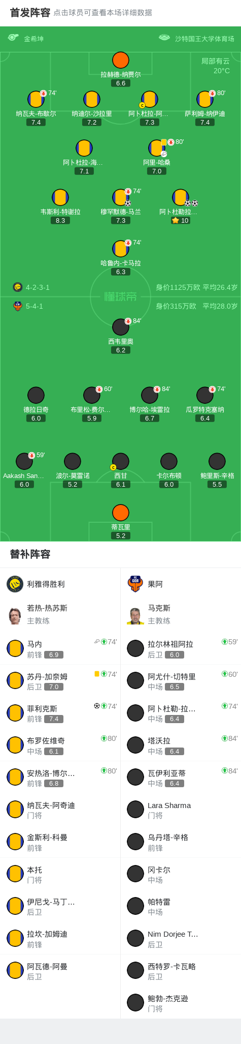 第73分钟,利雅得胜利换人,菲利克斯、马内替补登场