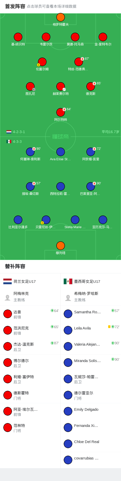 荷兰女足U17 1-0墨西哥U17,图扎尼一锤定音