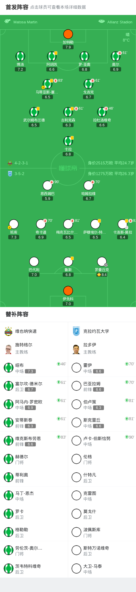 北京时间11月7日欧洲协会联赛 联赛阶段 第3轮,维也纳快速对阵克拉约瓦大学。克拉约瓦大学罗曼丘克破门。最终比分维也纳快速 01 克拉约瓦大学。