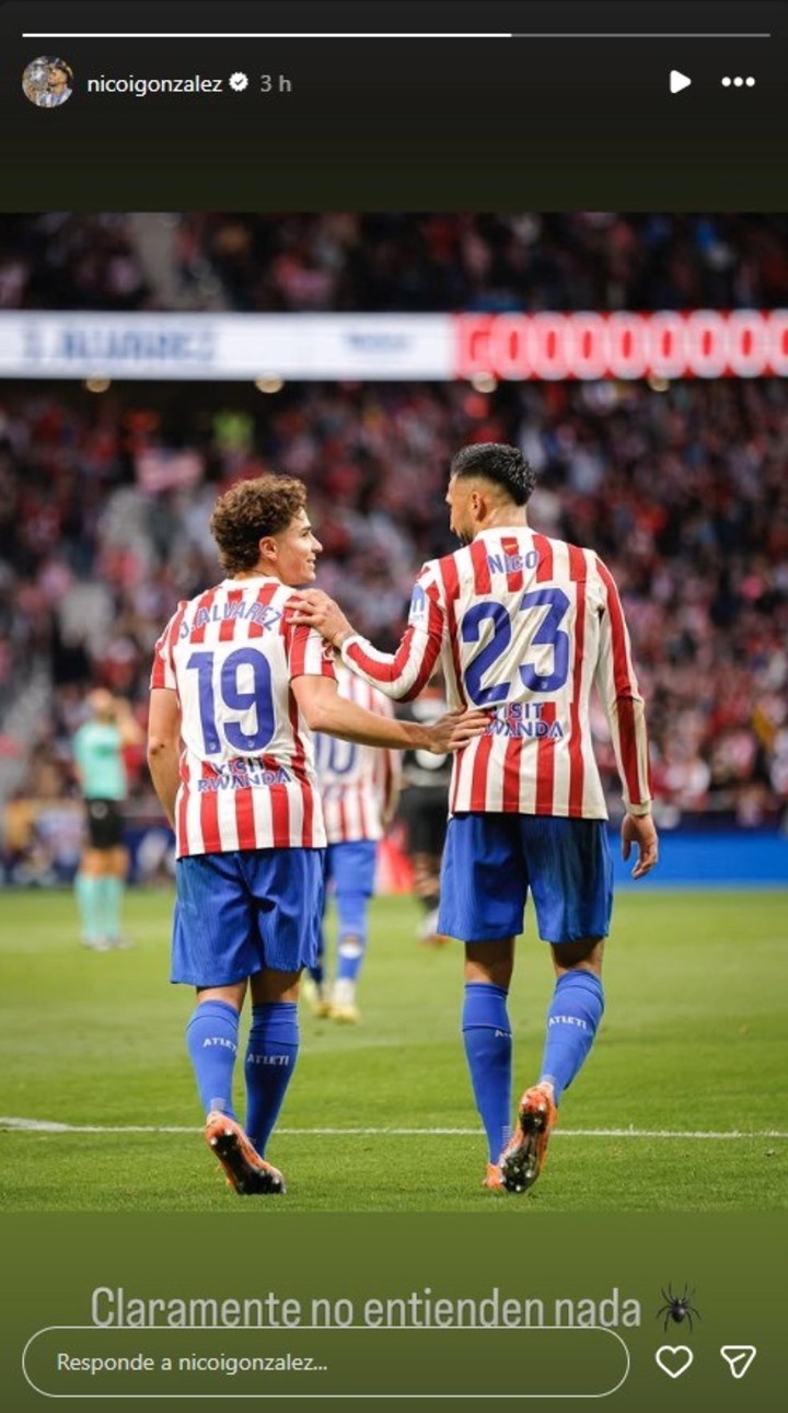 在最佳阵容的前锋提名中,阿尔瓦雷斯并没有入选,随后他的队友尼古拉斯-冈萨雷斯在社交媒体上晒出两人的合照并写道:“显然他们什么都不懂。”