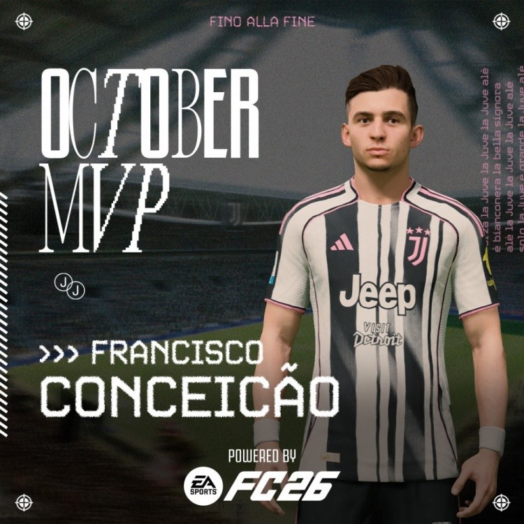 凭借在近期比赛中的出色发挥,弗朗西斯科-孔塞桑被评为EA Sports十月月度MVP。俱乐部将于2025年11月8日星期六,在都灵德比开赛前,为孔塞桑颁发奖项。