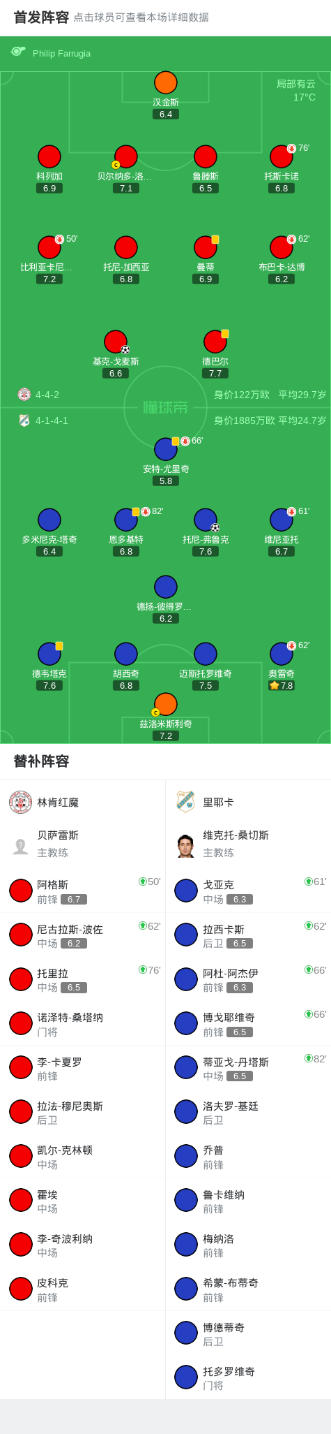 北京时间11月7日,欧洲协会联赛联赛阶段第3轮,林肯红魔迎战里耶卡。比赛中,里耶卡球员托尼-弗鲁克在队友dominik thaqi的助攻下率先破门。随后,林肯红魔获得点球机会,但未能把握住,曼蒂主罚被扑出。比赛尾声阶段,林肯红魔球员基克-戈麦斯成功破门,帮助球队扳平比分。最终双方以1比1握手言和。