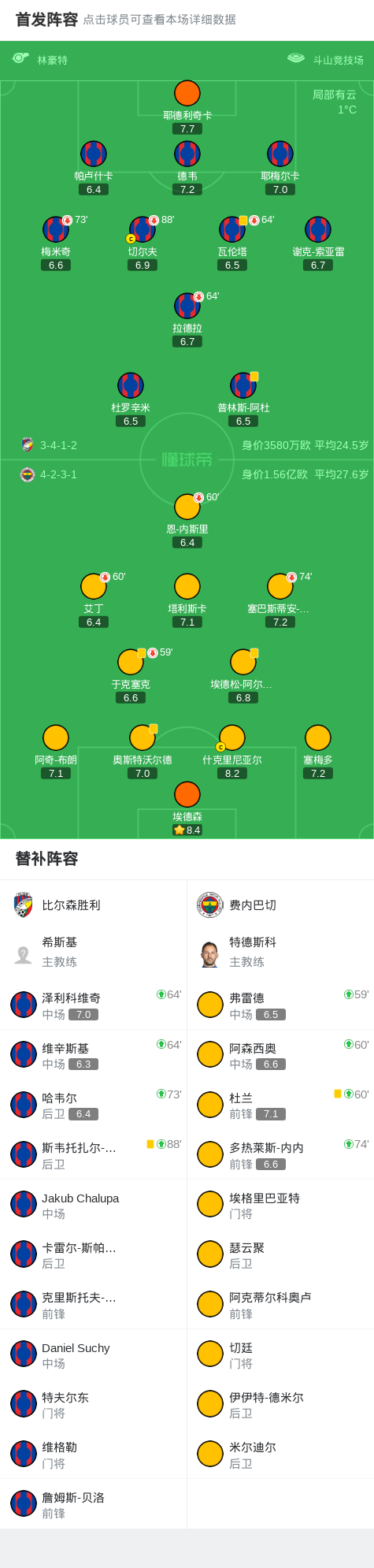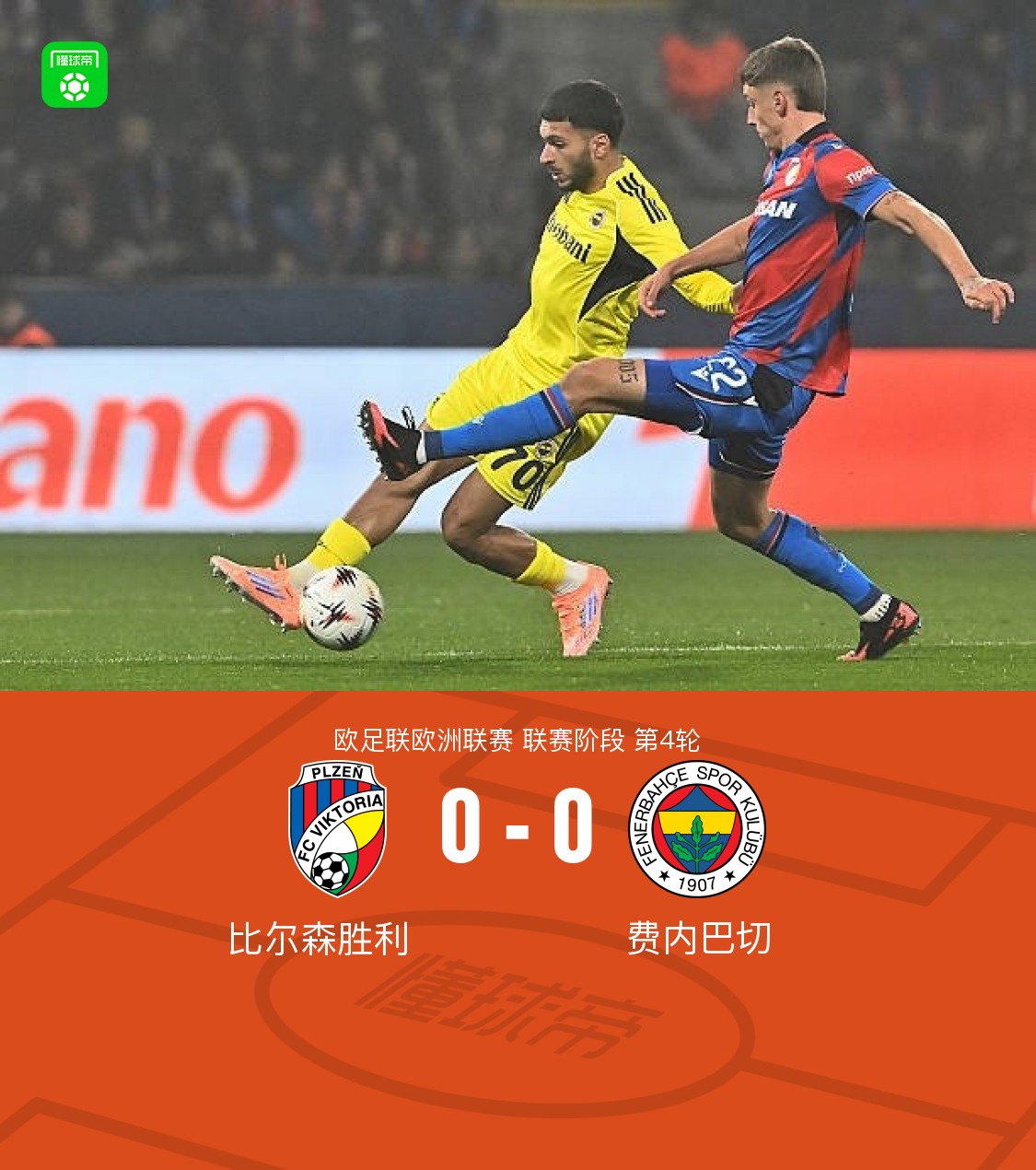 北京时间11月7日欧足联欧洲联赛 联赛阶段 第4轮,比尔森胜利对阵费内巴切。最终比分比尔森胜利 0–0 费内巴切。