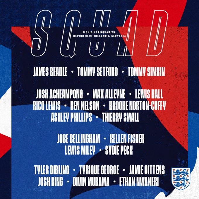 英格兰U21队公布11月欧青赛预选赛大名单,里科-刘易斯、小贝林、吉滕斯、恩瓦内里等人入选。英格兰U21队将在11月主场对阵爱尔兰U21队,客场对阵斯洛伐克U21队。