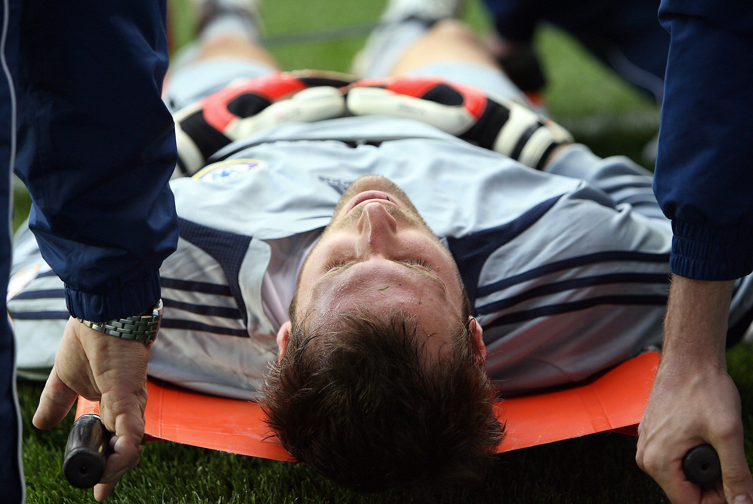 这次撞击导致他的颅骨发生了凹陷性骨折,甚至有碎骨头已经刺入大脑。牛津拉德克利夫医院的医生在他凹陷的颅骨处植入了两块金属片,经过三个小时的手术,切赫终于活着下了手术台。