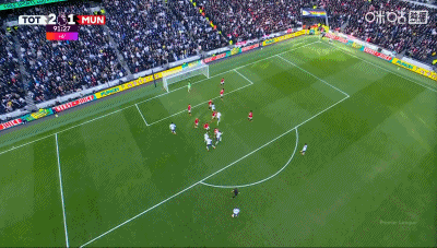 第90+1分钟,奥多贝尔远射,里沙利松将球蹭进球门,热刺2-1反超曼联!