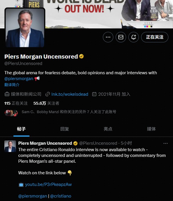 在此前的北京时间凌晨两点,皮尔斯-摩根曾更新过一次C罗访谈的内容,其中包括评论员们对于C罗发言内容的解读分析与讨论。这也可能是摩根所指的“加时赛”内容。