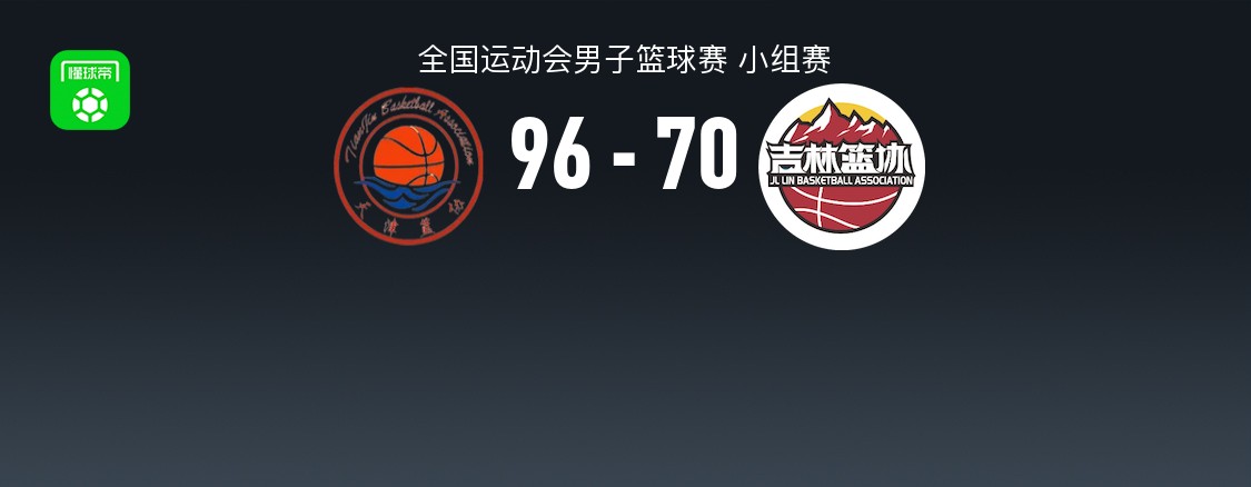 北京时间11月8日全国运动会男子篮球赛 小组赛,天津男篮对阵吉林男篮。半场天津男篮51-35吉林男篮,最终天津男篮96-70吉林男篮。天津男篮田雨25分9板2助,时德帅22分5板3助;吉林男篮孔德高13分6板,耿铭旸11分5板2助。
