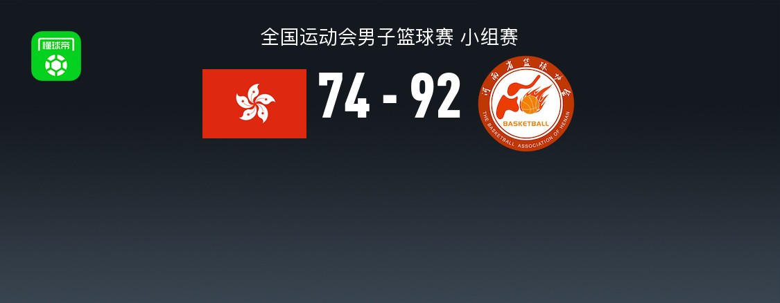 北京时间11月8日全国运动会男子篮球赛 小组赛,中国香港男篮对阵河南男篮。半场中国香港男篮37-47河南男篮,最终中国香港男篮74-92河南男篮。中国香港男篮杨睿骐20分4板2助,梁兆华15分3板5助;河南男篮吕俊虎35分11板5助,贾昊20分1板2助。