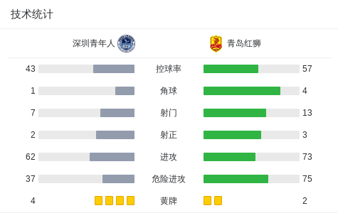 第8分钟,张一轩送点,胡明主罚点球命中,深圳青年人1-0青岛红狮