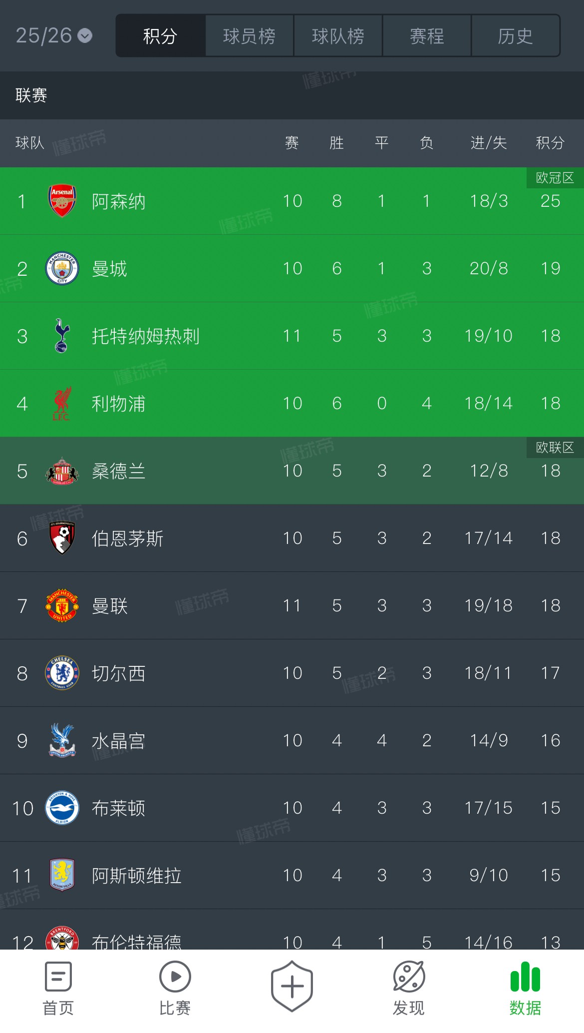 英超第11轮的比赛正在进行中,曼联在客场2-2战平热刺,双方握手言和各拿一分,本场比赛过后,目前在英超积分榜有五支球队都积18分。
