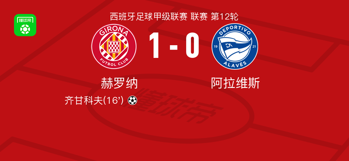 北京时间11月8日,西班牙足球甲级联赛第12轮,赫罗纳坐镇主场迎战阿拉维斯。比赛中,布赖恩-希尔送出助攻,齐甘科夫破门得分,帮助球队取得领先。凭借此次进球,赫罗纳最终以1-0战胜阿拉维斯,全取三分。