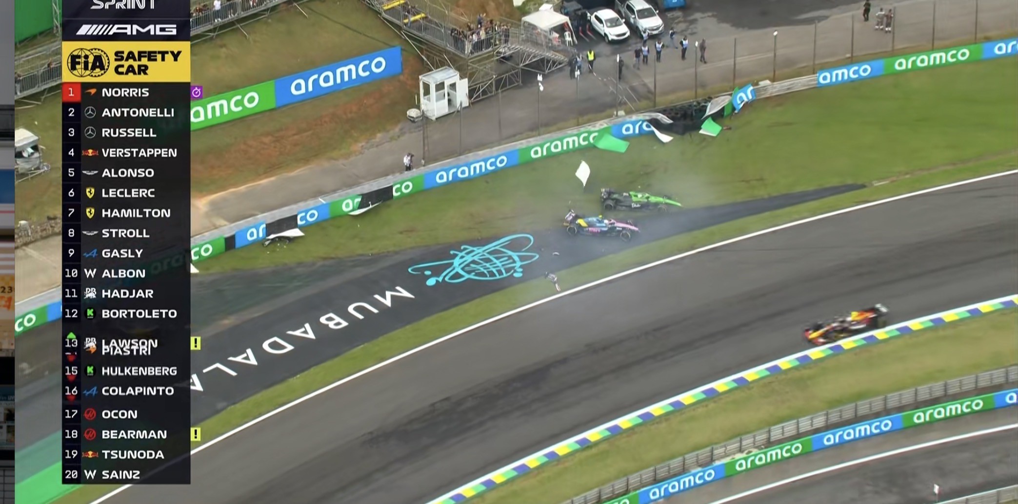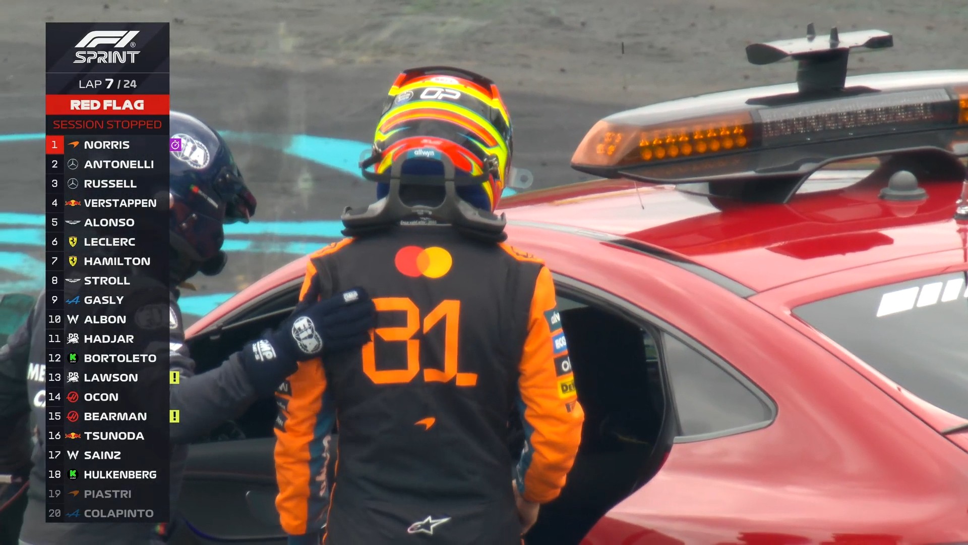 第7圈:赛会出动红旗,马修需要对护栏进行维修!