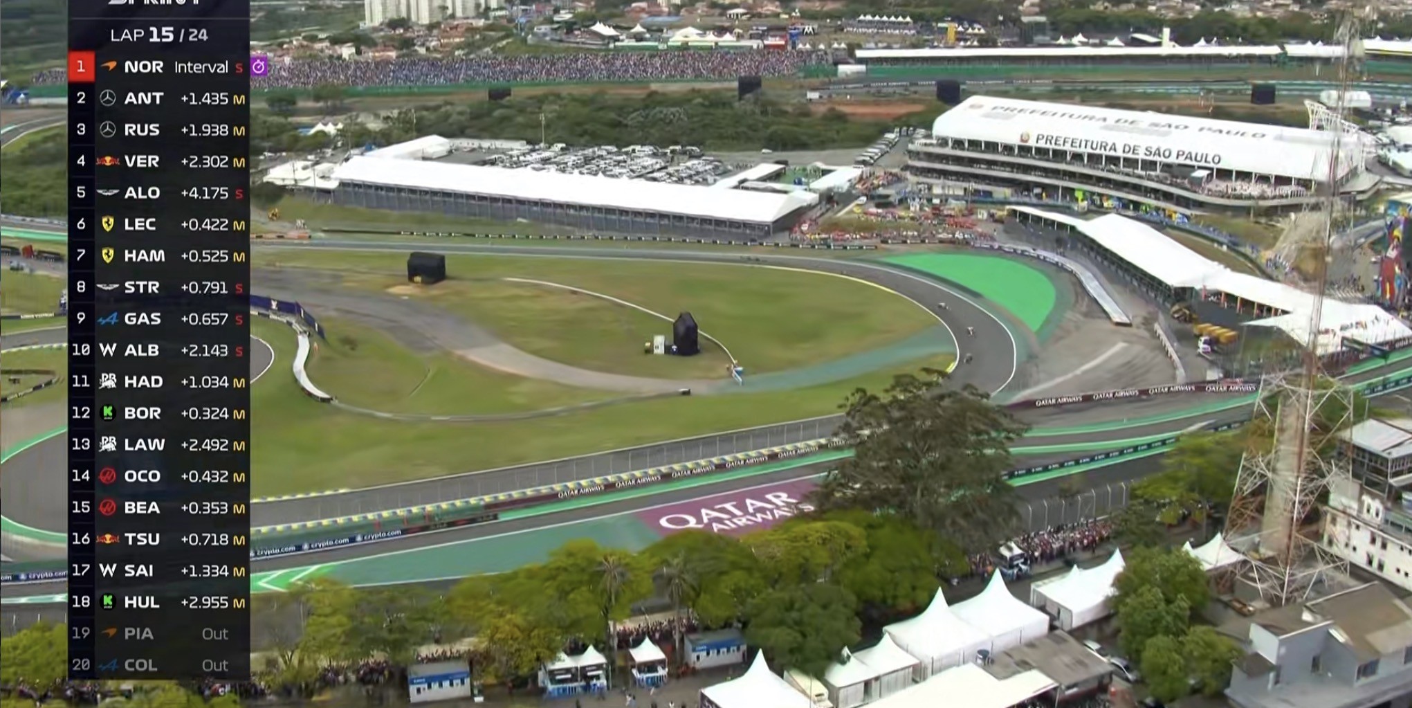 第15圈:前方车手逐渐带开,阿隆索无法匹配前方维斯塔潘的节奏,成为积分区最后几个位置的火车头;