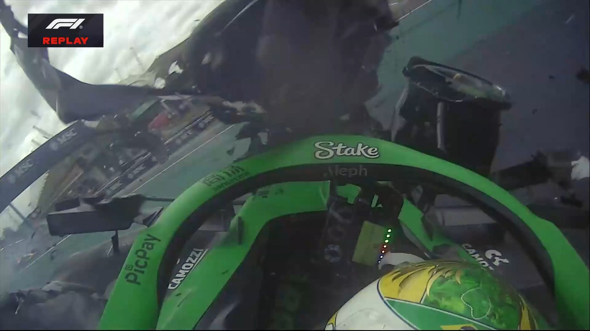 第24圈:博托莱托在1号弯重刹后赛车失控,赛车严重受损;