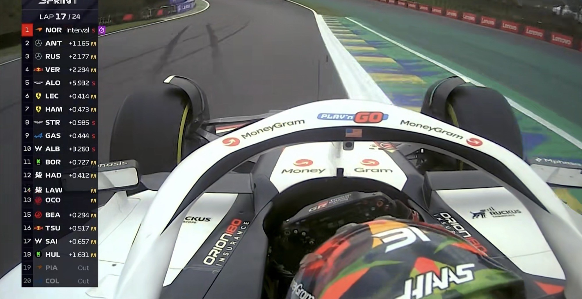 第17圈:奥康在4号弯前的外线在DRS的加持下超越劳森,上升至第13;