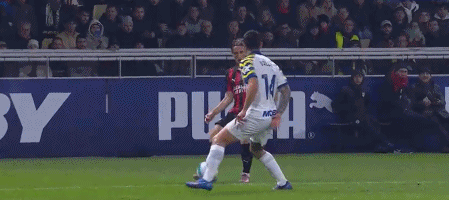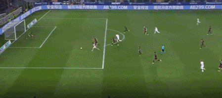 第45+1分钟,扳回一城,贝尔纳韦兜射入死角,米兰2-1