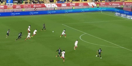 第40分钟,爱德华助攻,赛义德禁区左路劲射破门,朗斯2-1摩纳哥