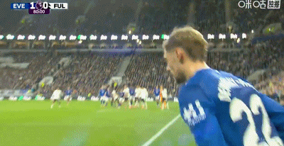 第45+4分钟,这次有了,盖伊跟进打门得分,埃弗顿1-0领先