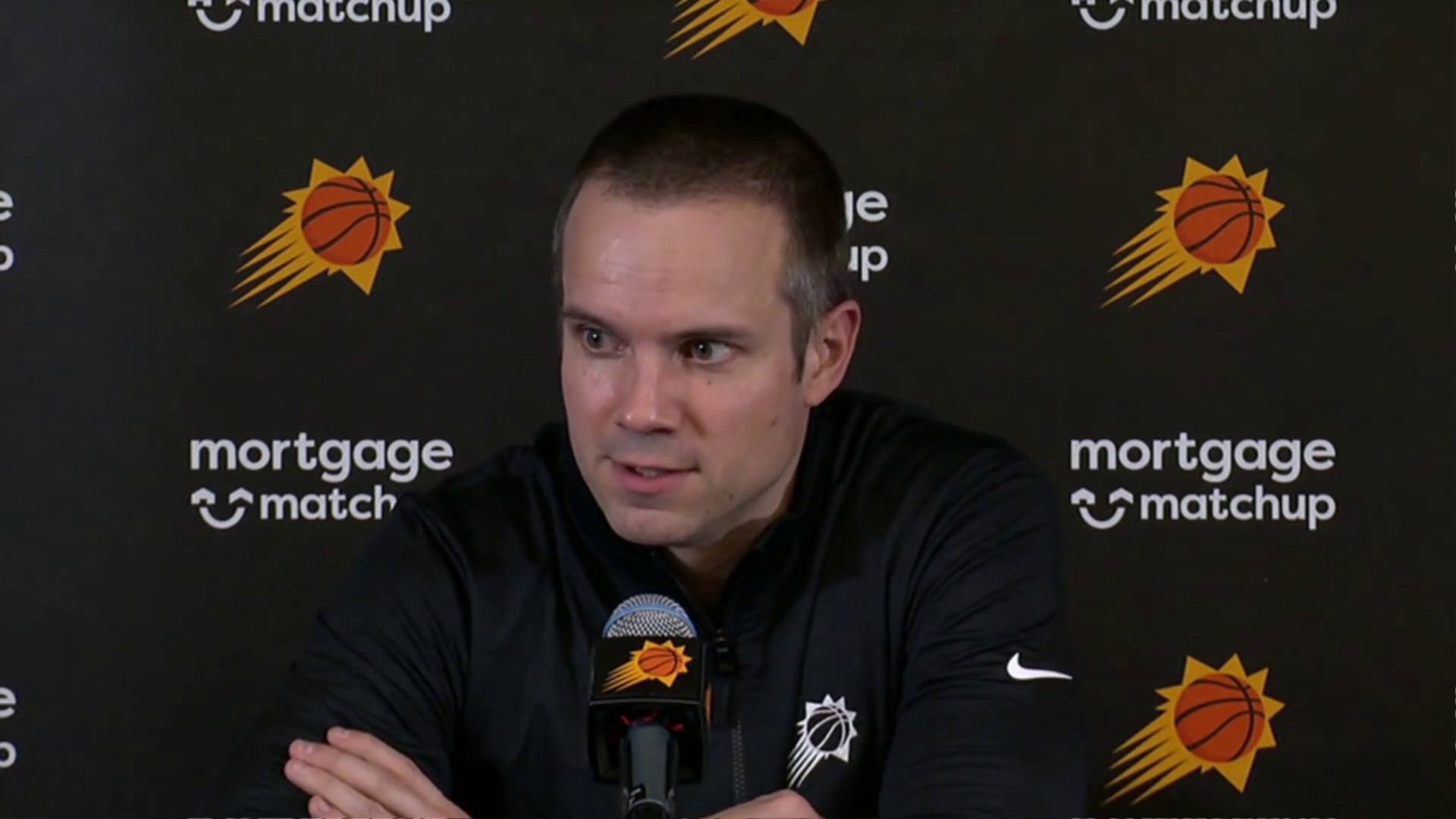 现在还没有最新的消息,德维恩(队医)会带他回去,你知道的,明天在菲尼克斯会做更多的检查,现在只是为他感到惋惜。