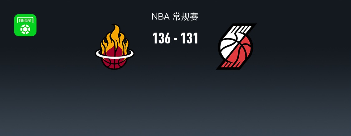 第四节热火尼古拉-约维奇拿下12分,开拓者阿夫迪亚拿下7分,最终热火136-131战胜开拓者