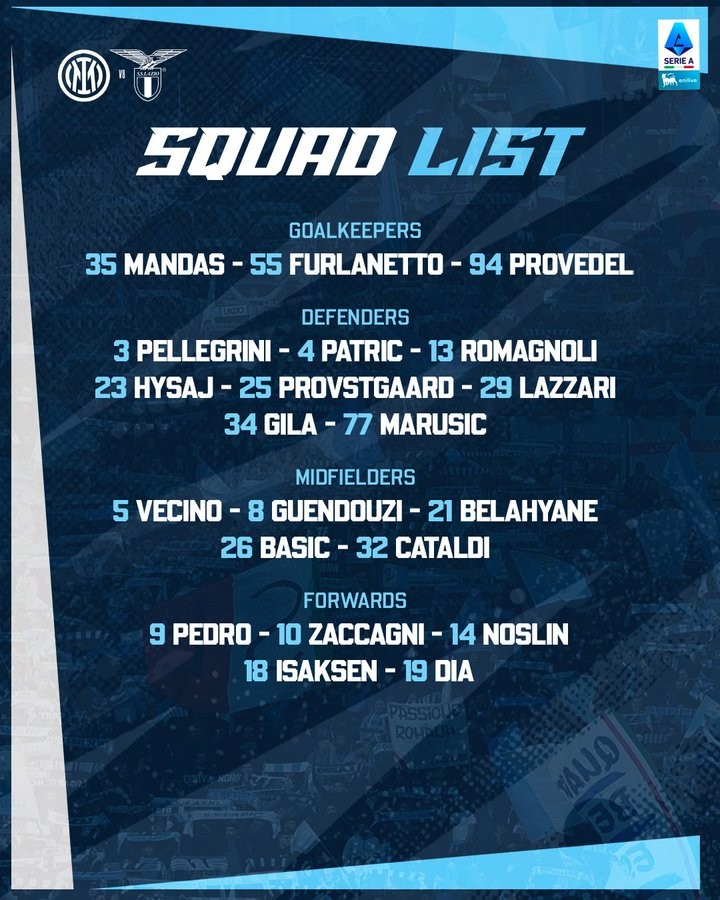 北京时间11月9日,拉齐奥公布了意甲第11轮他们做客挑战国际米兰的大名单,吉戈、努诺-塔瓦雷斯、菲萨约-巴希鲁、罗韦拉、卡斯特利亚诺斯以及坎切列里继续缺阵。