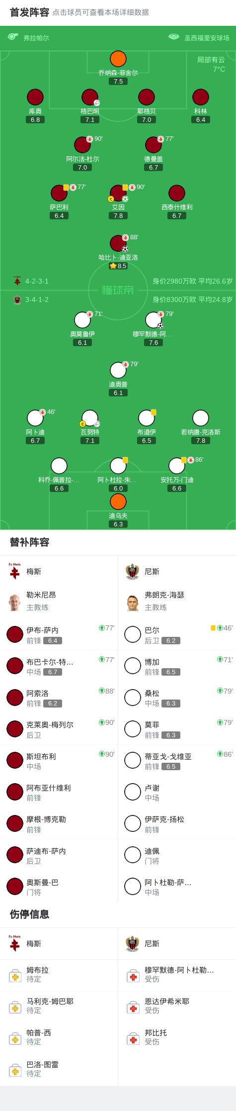 第35分钟,尼斯球员瓦努特助攻穆罕默德-阿里-肖打入一球。