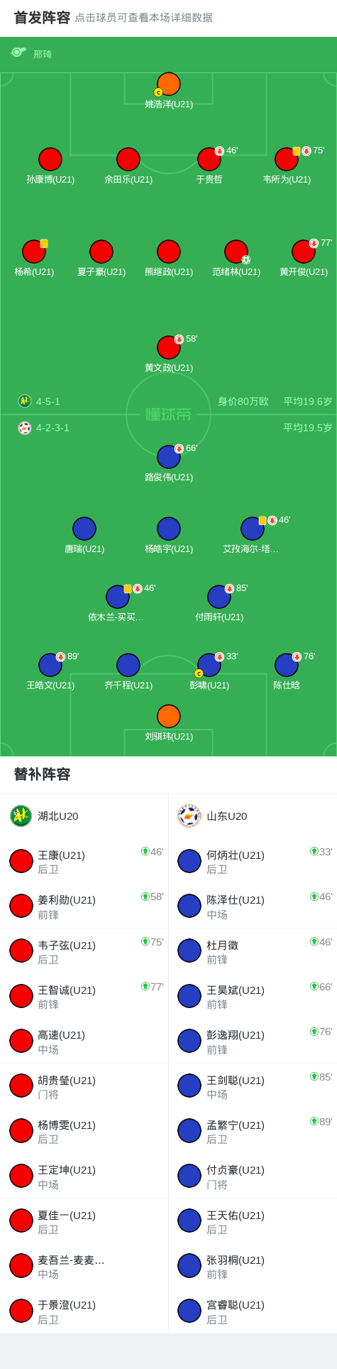湖北U20 1-0山东U20,范绪林点射制胜