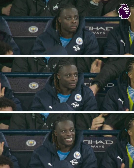 英超第11轮,曼城主场3-0大胜利物浦,此役打入一球的曼城边锋多库当选英超官方全场最佳球员,英超官方社媒晒出了多库得知自己是全场最佳时的反应。