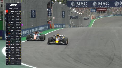 第三十三圈:诺里斯出站后迅速过掉维斯塔潘上到P3