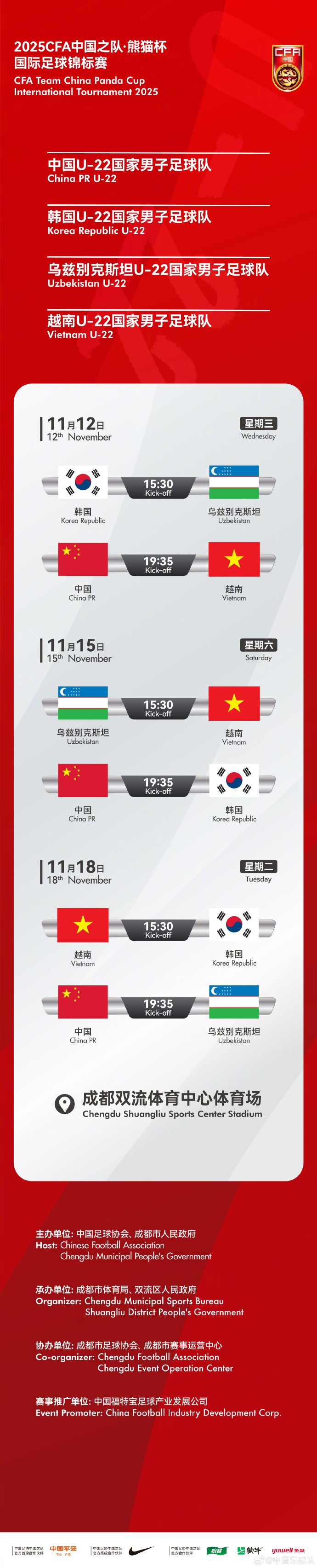 北京时间11月12日,熊猫杯国际邀请赛将会在成都双流体育中心体育场正式打响!中国U22首战将迎来同越南U22的对决。