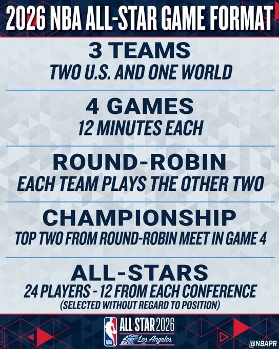 官方:2026年NBA全明星赛将采用美国队对世界队的新赛制