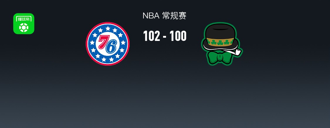 第四节76人贾斯汀-爱德华兹拿下13分,凯尔特人安芬尼-西蒙斯拿下10分,最终76人102-100战胜凯尔特人