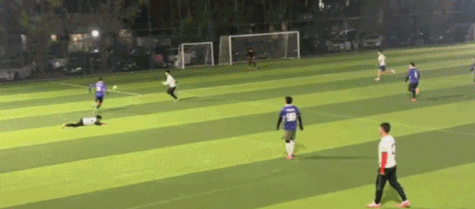 第71分钟,对方任意球破门,懂球帝0-3落后ONE FC