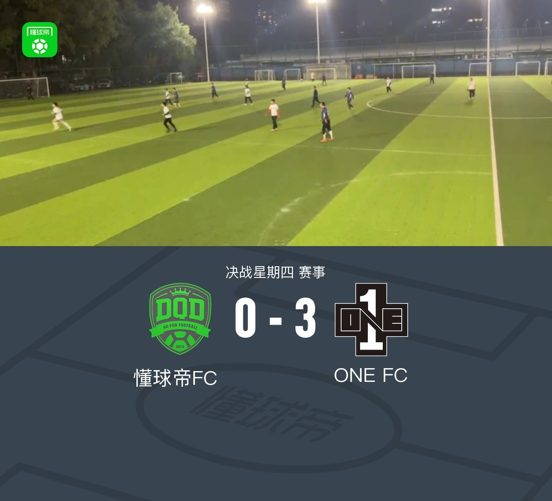 大家晚上好,又是一个元气满满的周四,我懂本场比赛的对手是ONE FC。双方经过较量,最终懂球帝0-3不敌ONE FC。