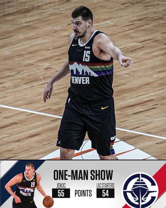 本场比赛,掘金队当家球星约基奇表现神勇,他在33分34秒的出场时间内23投18中爆砍55分12篮板6助攻1抢断1盖帽,三分球6中5,罚球16中14。