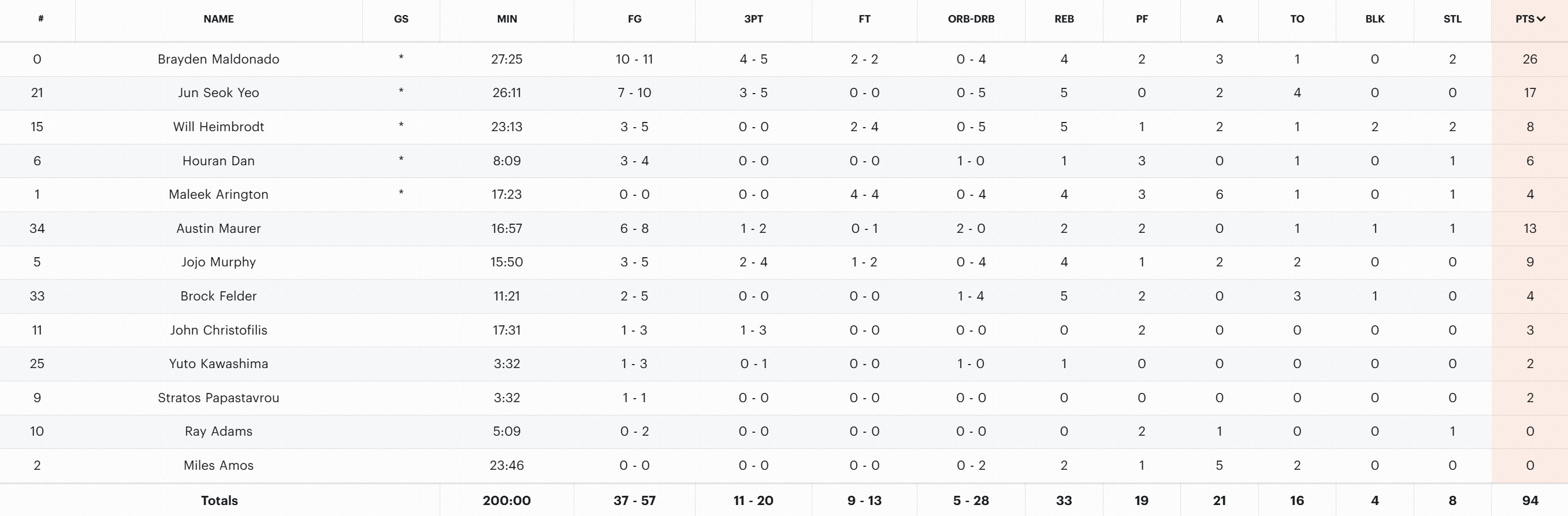 西雅图大学94-67大胜东华盛顿,淡厚然8分钟6分,吕俊熙17+5+2